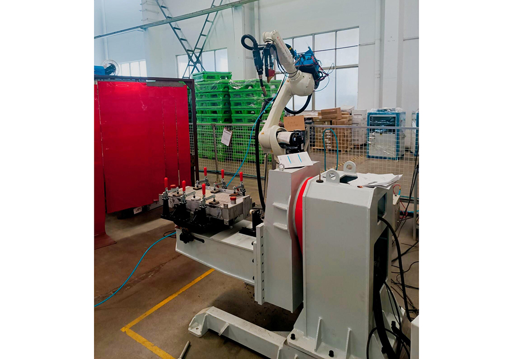 This technical transformation project implements a dual-robot welding system for MIG welding (including intercooler, oil cooler, and radiator). The system configuration features two welding robots with an independent positioner installed on opposite sides.